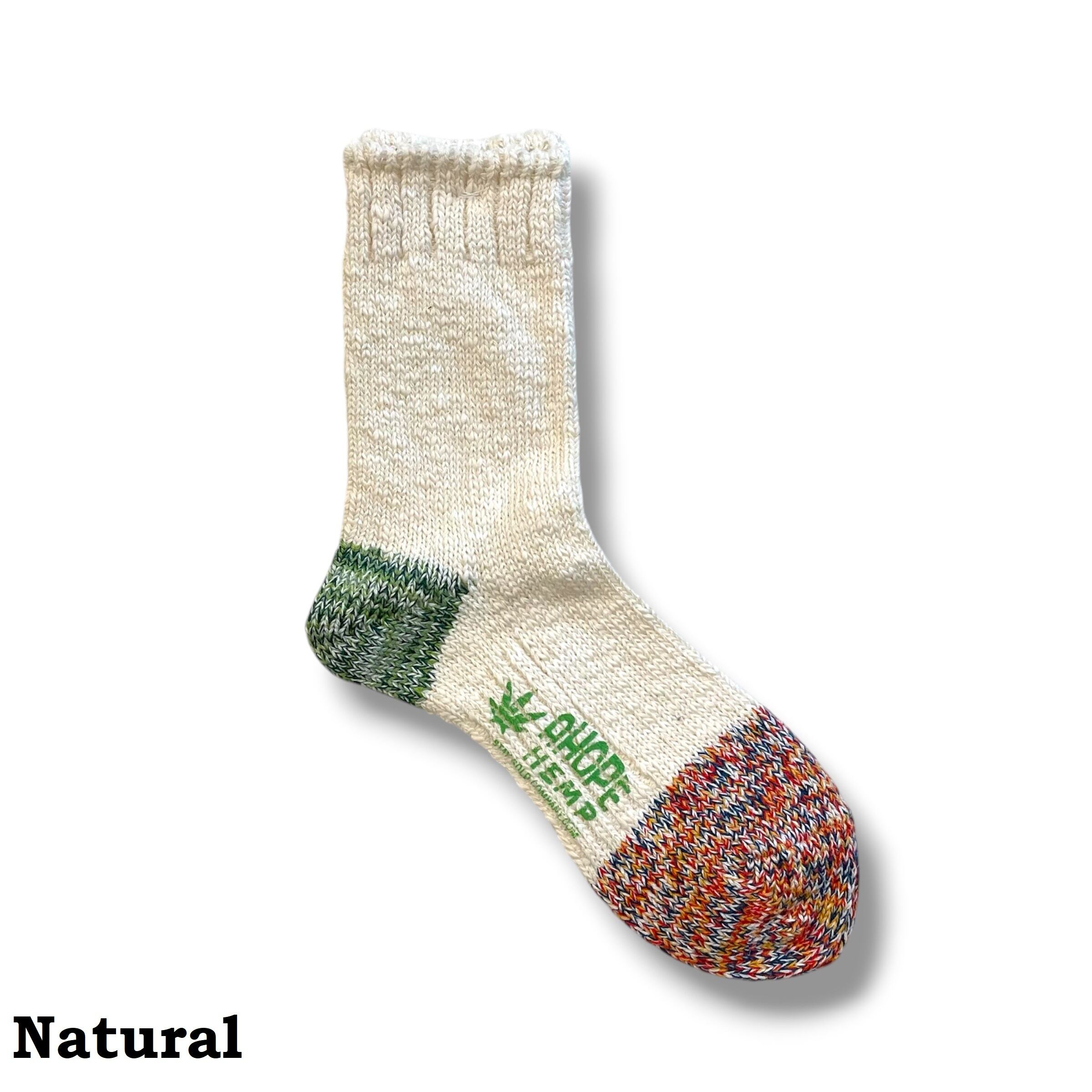 ・吸収性の高いコットンと、発散性・抗菌・消臭効果の高いヘンプの組み合わせで、暑い季節はムレにくく、寒い季節は暖かいです。